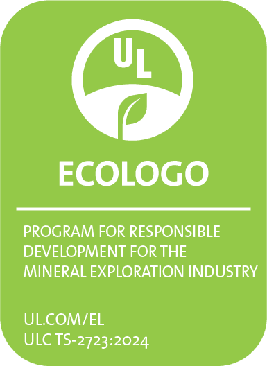The ECOLOGO® certification is administered by UL Solutions and is recognized across Canada as a rigorous standard for environmental, social, and governance (“ESG”) performance. Designed to promote responsible natural resource development, the ECOLOGO® program assesses exploration companies against criteria such as environmental protection, health and safety, respect for Indigenous rights, and community engagement.